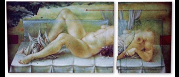 MARIA MICOZZI Maria Micozzi nasce a Tolentino (MC) nelle Marche. Per scelte familiari non frequenta scuole d‘arte anche se le sue disposizioni creative sono evidenti precocemente. I suoi studi sono di formazione classica e scientifica ai quali si sono aggiunti poi quelli in psicanalisi ed in epistemologia in ambito filosofico. Sempre molto legata alla pittura ed alla scultura si è dedicata totalmente all‘attività artistica a partire dal 1985 fondendo una qualità e raffinatezza pittorica esemplata sulla grande tradizione rinascimentale, da Leonardo a Michelangelo, con la sperimentazione di inedite soluzioni tecnico-formali (ideazione di nuovi supporti come i quadriscultura, opere bifacciali, assemblaggi di più tele e cornici con utilizzo di materiali poveri come lo spago) affini allo spirito delle avanguardie artistiche contemporanee di indirizzo concettuale. Questo suo personale percorso artistico, non etichettabile né riconducibile ad alcuna scuola o corrente, viene immediatamente notato e seguito con interesse critico da Pierre Restany, teorico negli anni ‘60 del movimento artistico "Noveau Realisme", che interviene personalmente nel 1986 a presentare una mostra di Maria Micozzi a Milano. Dopo una sua partecipazione all‘ Expo di New York nel 1987, l‘artista marchigiana inizia una intensa attività espositiva con mostre a Monaco, Stoccarda, Beyreuth in Germania, ad Ascona in Svizzera, presso il Ministero della Cultura di Madrid ed al Goethe Institute con la galleria "L‘Ariete" di Bologna. Nella sua opera, orientata ad una visione sistemica e strutturale del mondo, la dimensione fantastica scaturisce dalla complessità labirintica delle infinite relazioni possibili, geometrico- matematiche, mnestiche o simboliche, tra gli elementi di un Tutto che è la Grande Madre, la Natura-Cosmo rappresentata da opulenti ventri e corpi acefali femminili, emblematici nella ricerca pittorica di Maria Micozzi. In questo suo anelito alla totalità si svuotano di senso le rigide contrapposizioni tra figurazione ed astrazione, razionale ed irrazionale, mente e corpo attraverso la ricomposizione e "ricucitura" di frammenti di realtà delineando così nuove connessioni e relazioni ma anche nuove modalità di rappresentazione che ridefiniscano il nostro essere nel mondo. Nell‘ultimo decennio sono da menzionare le mostre a Francoforte (1994), a Miami in U. S:A.(1995) ed a New York presso l‘Istituto Italiano di Cultura (2001), nonché le personali itineranti a tema come "La Seduzione- Ossessione e paura nei trattati degli inquisitori" (1997) , "La disperatissima sete- 8 píèces per Giacomo Leopardi" a Recanati con il patrocinio della Regione Marche.(1998) e "Maria Micozzi o il mistero del corpo" per la Fondazione Umberto Mastroianni (2003).