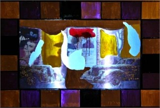 Adelchi firmato a retro 90x66x6, l‘opera a un dispositivo illuminante inserito nel quadro