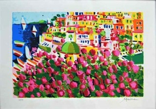 Athos Faccincani, Peschiera 1951, serigrafia a tiratura limitata,esemplare 39/99, firmata in basso a destra