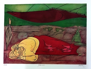 G.Ghelli - A.Bueno,litografia a tiratura limitata,firmata a matita in basso a destra dal A.Bueno,firmata in basso a sinistra dal G.Ghelli,tiratura in basso a centro P.A.